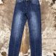 Jeans denim fondo taglio a vivo
