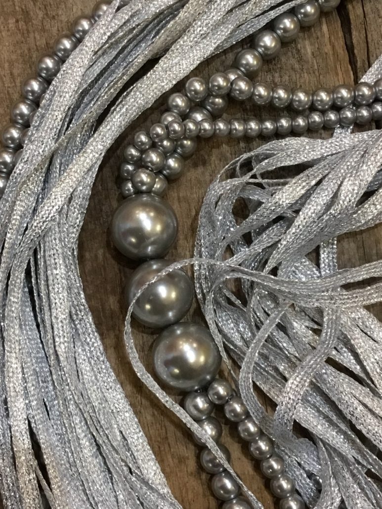 Collana lunga tessuto e perle