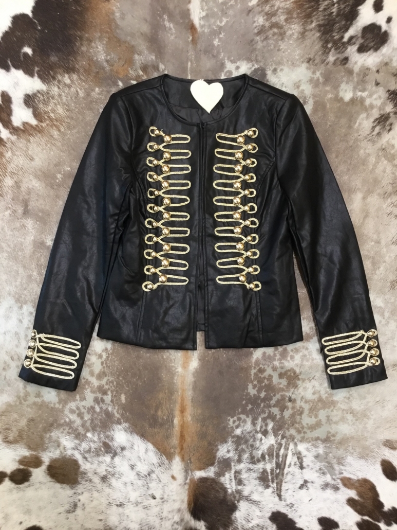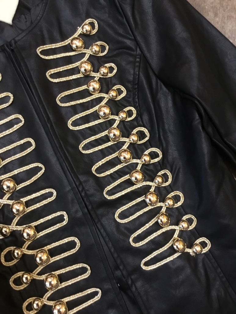Giubbo ecopelle con alamari oro