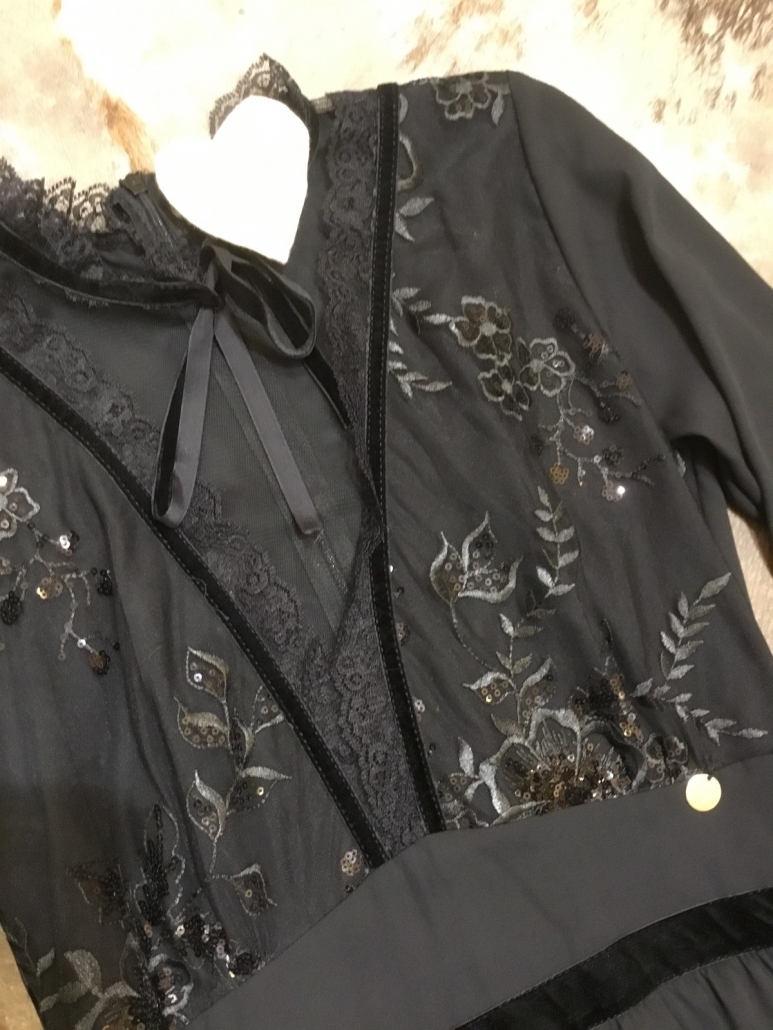 Vestito balze con tulle, pizzo e paillettes