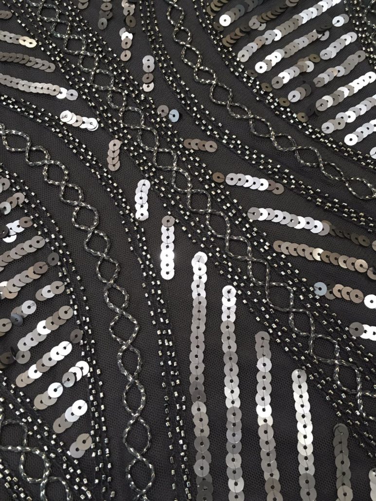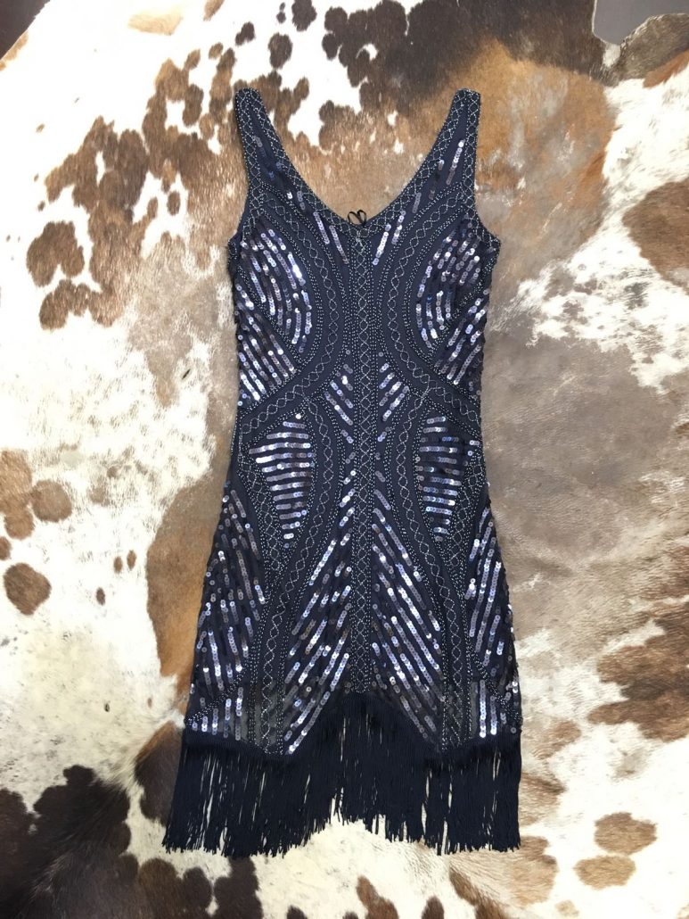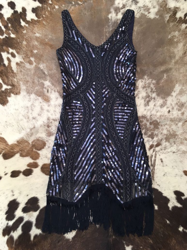 Vestito blu con perline e frange