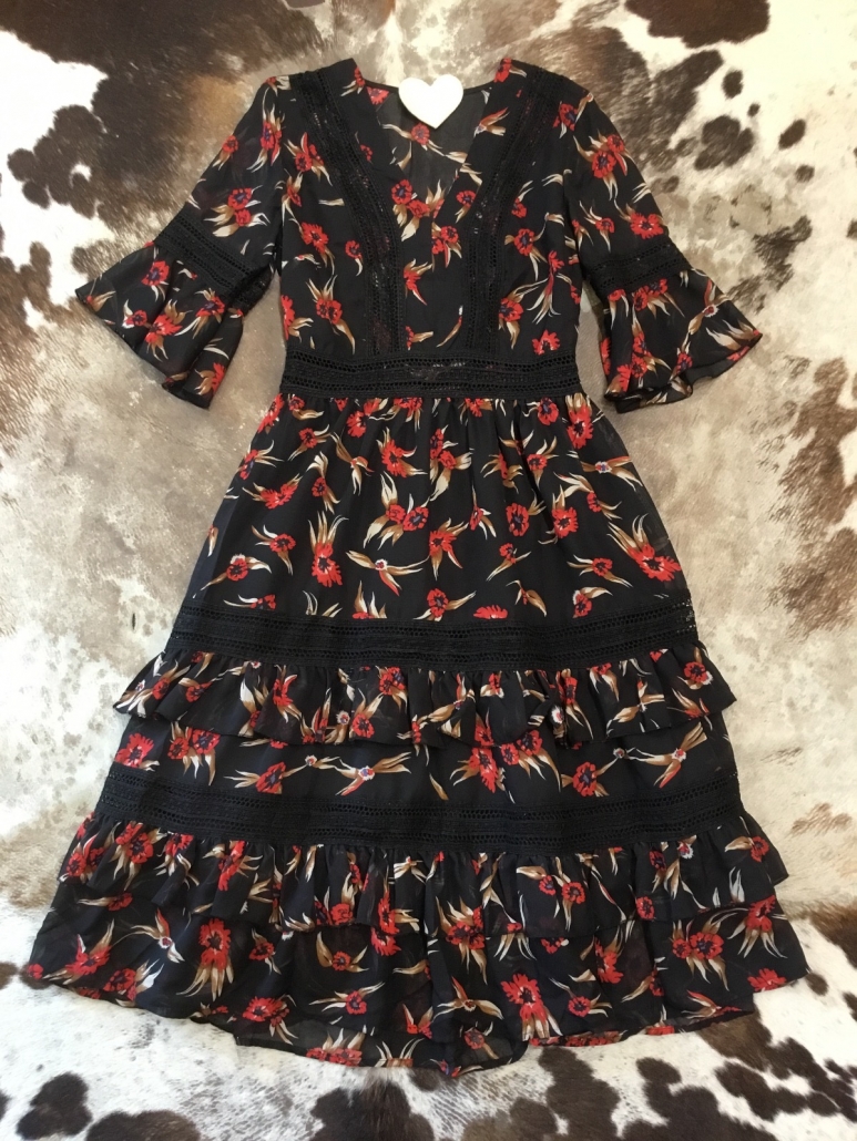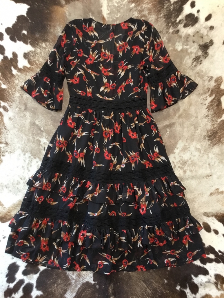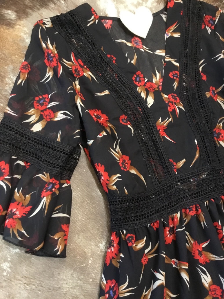 Vestito chiffon con inserti in pizzo